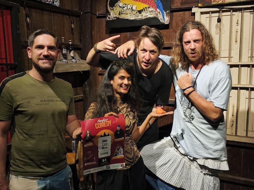 Angkor Comedy Siem Reap grew directly out of Cambodia’s established stand-up ecosystem. Princella Anum Gill and Freddy Maze first connected at a 2022 open mic night at Noisy Chilli, an event organized by Comedy in Cambodia, a comedy troupe based in Phnom Penh. For more about Princella’ and Freddy’s story and their contributions to comedy in Siem Reap, check out Angkor Comedy’s website: https://angkorcomedy.com/
